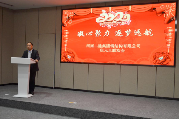 河南二建鋼構(gòu)總經(jīng)理張永慶代表公司對全體職工一年來為企業(yè)的建設(shè)與發(fā)展付出的努力表示衷心的感謝,并致以新年的問候,同時希望在新的一年里,全體職工同心同德,齊心協(xié)力,共創(chuàng)佳績。