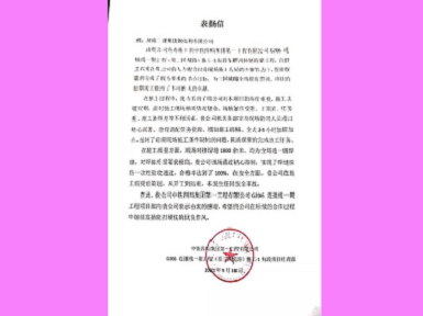 中鐵四局集團(tuán)第一工程有限公司向我公司發(fā)來表揚(yáng)信