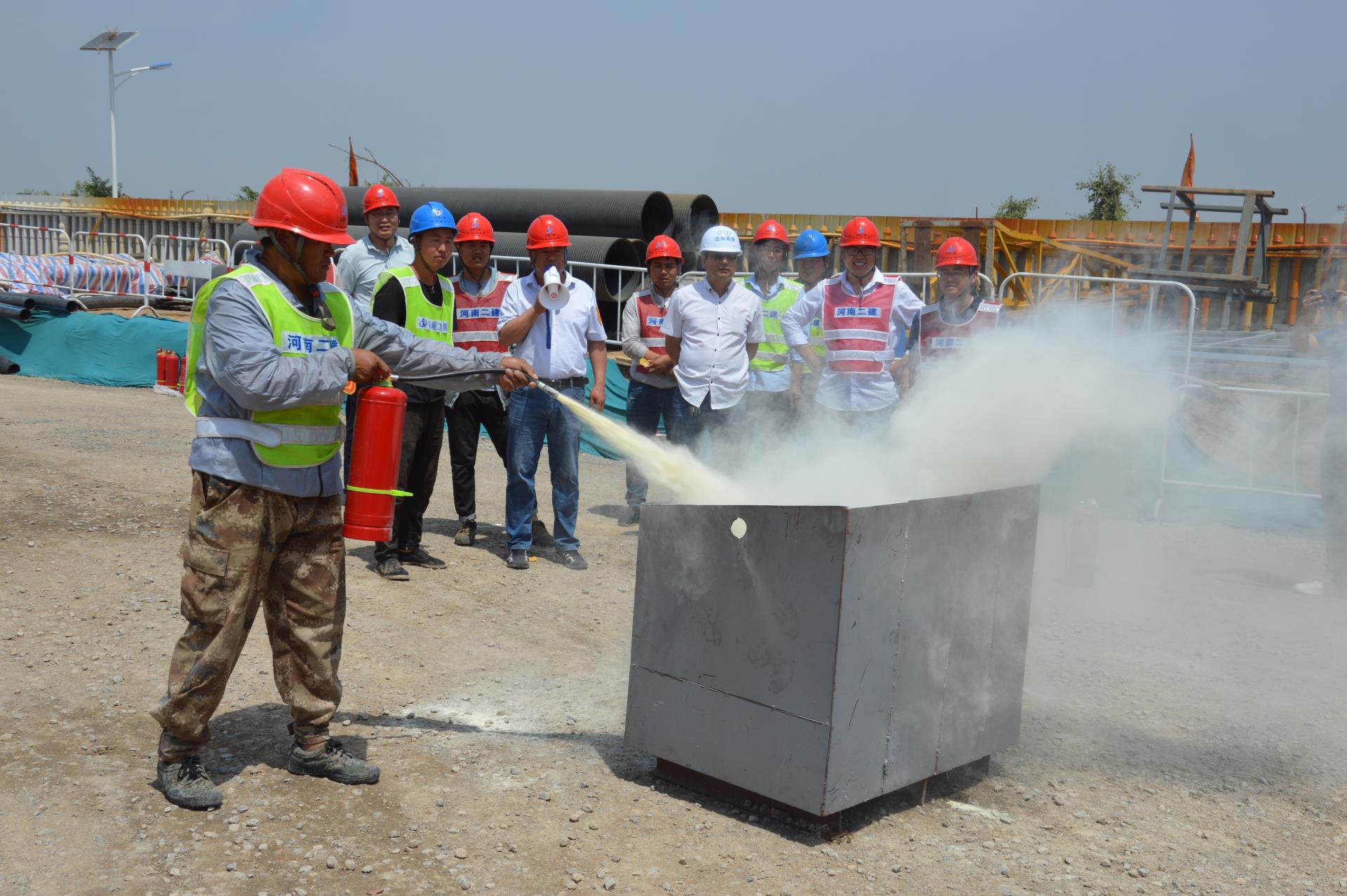 202020.05新鄉(xiāng)陽(yáng)光家園配送中心項(xiàng)目部組織開(kāi)展消防演練活動(dòng)
