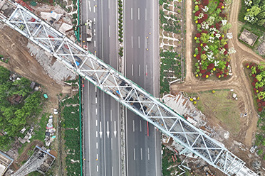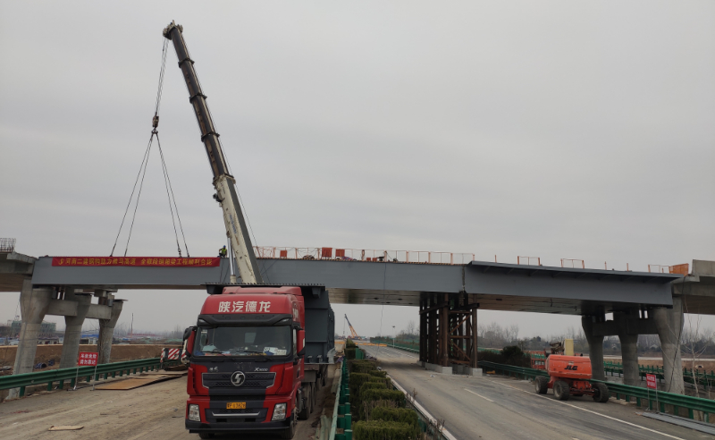 滁來(lái)全快速通道全椒段與滁馬高速公路互通立交工程橋?qū)?9m,長(zhǎng)55m,箱體鋼材材質(zhì)為Q345qD,總重量575.83噸;單節(jié)段最重47.19噸。 -