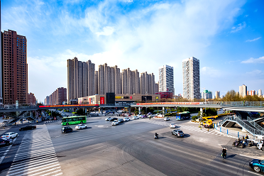 新鄉(xiāng)市金穗大道與新二街交叉口人行天橋該項(xiàng)目位于新鄉(xiāng)市金穗大道與新二街交叉口,主橋跨越金穗大道和新二街,總長(zhǎng)度369m、寬度4.5m,人行梯道寬度3.5m,跨越金穗大道的主橋長(zhǎng)約77m,跨越新二街的主橋約55m,四角用弧形連接。交叉口南側(cè)為寶龍城市廣場(chǎng)。 -